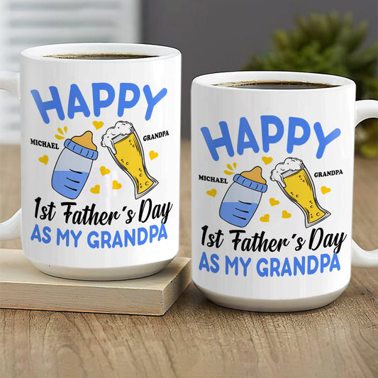Happy 1st Father's Day As My Grandpa - Personalized Ceramic Coffee Mug