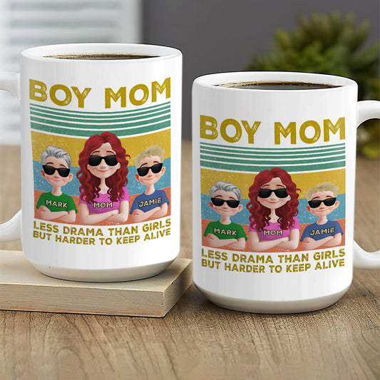 Boy Mom Less Drama Than Girls - Personalized Ceramic Coffee Mug